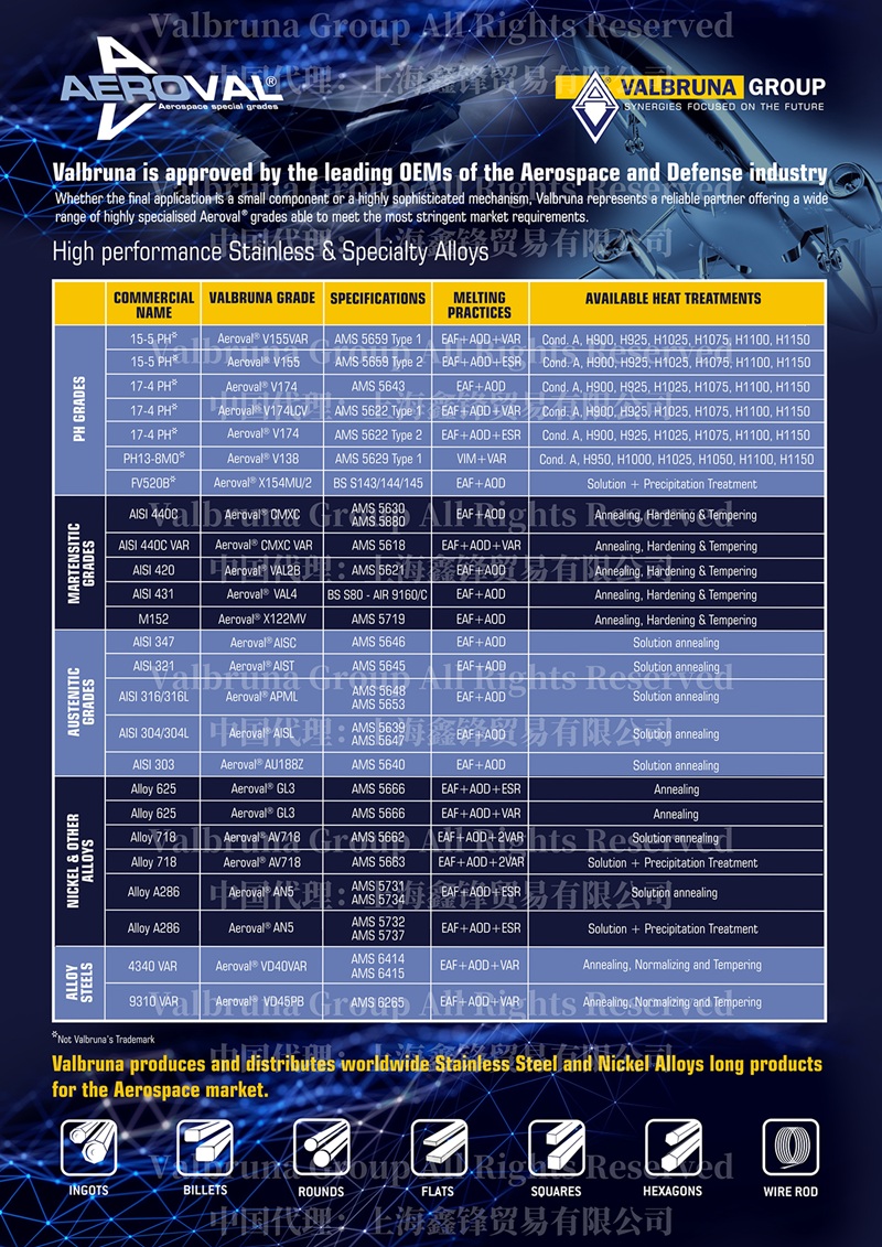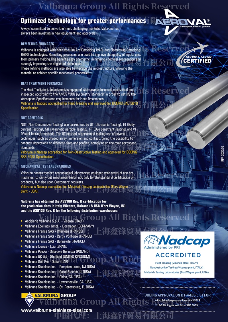 Valbruna 公司已得到在航空航天工业、国防科技领域处于领先地位的 OEM 厂商的认证。